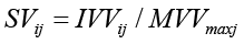 где SVij – стандартизированное значение j-го показателя в i-м интервале времени (, ); IVVij – исходные значения переменных; MVVmaxj – максимальное значение j-го показателя за весь исследуемый период.