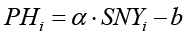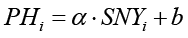 где PHi – годовые показатели заболеваемости населения на 100 тыс. человек; α – коэффициент регрессии; b – показатель, характеризующий увеличение следующего значения временного ряда; SNYi – номер периода или порядковый номер года;