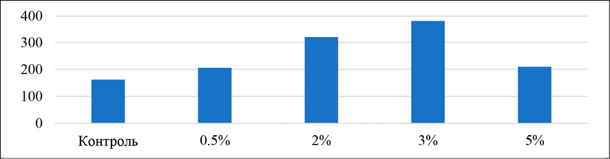 Рис. 1. Повышение числа КОЕ S. aureus при воздействии на исходную суспензию низких концентраций ДМСО Примечание: составлен авторами по результатам данного исследования